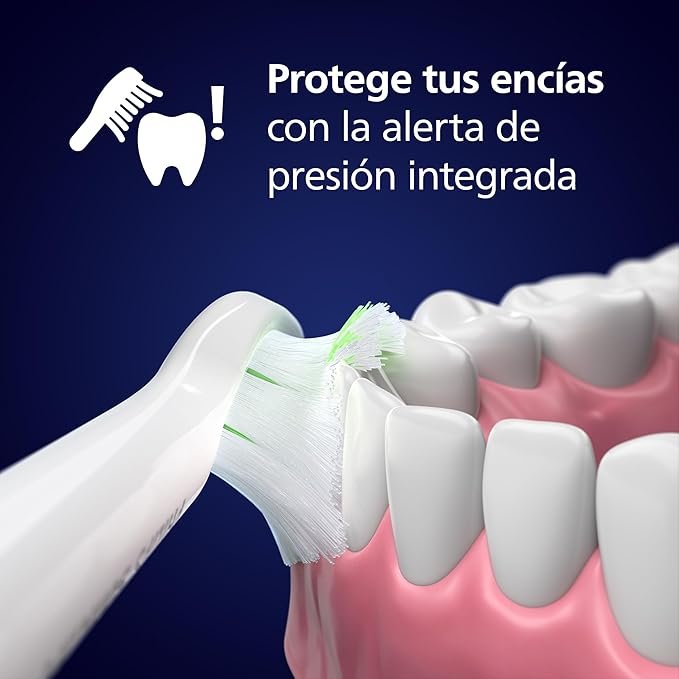 Otra característica innovadora de este cepillo es su sensor de presión. Este sensor alerta al usuario cuando se está aplicando demasiada fuerza durante el cepillado, lo que puede ser perjudicial tanto para el esmalte dental como para las encías. Al reducir la presión, el usuario puede cepillarse de manera más efectiva y segura, lo cual es fundamental para mantener dientes y encías sanos. Esta función es especialmente beneficiosa para quienes tienen la tendencia a ejercer presión excesiva al cepillar.